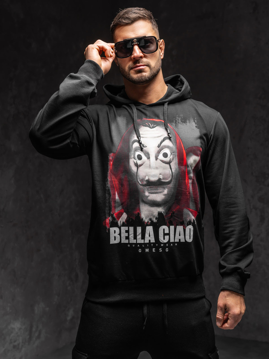 Opiniones de usuarios de Sudadera con capucha para hombre negra con estampado Bolf 6140A1