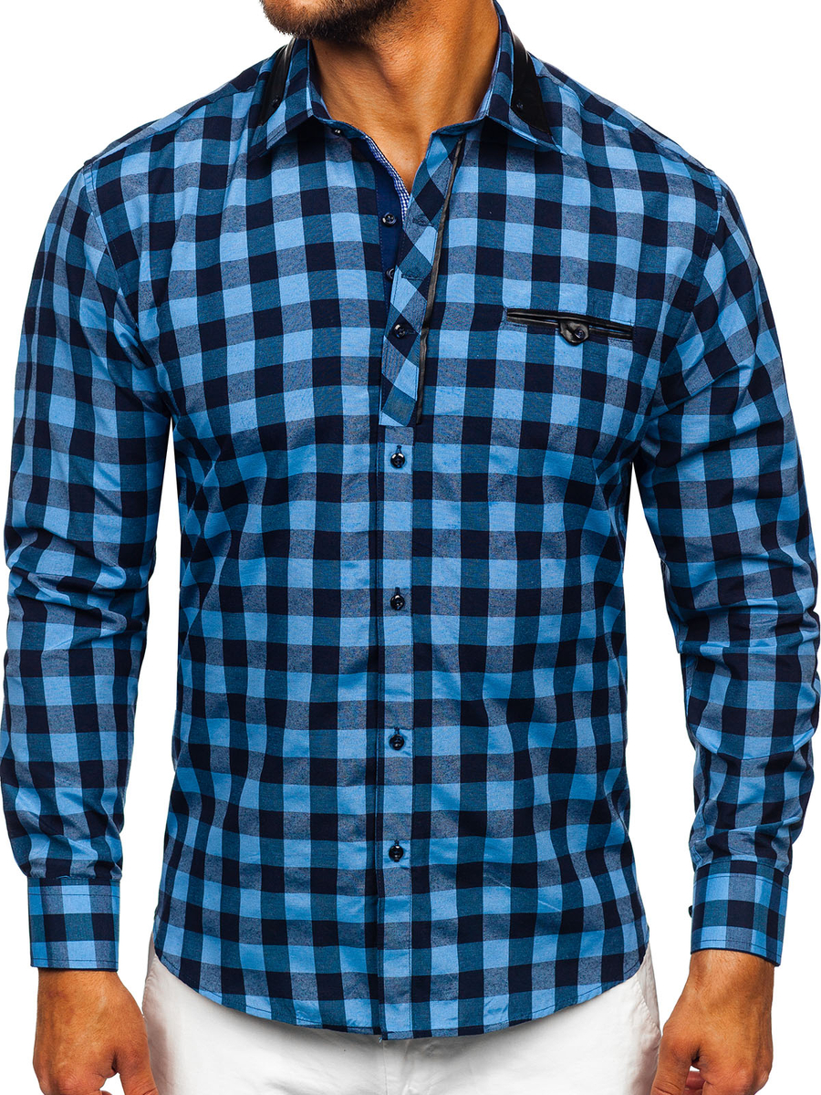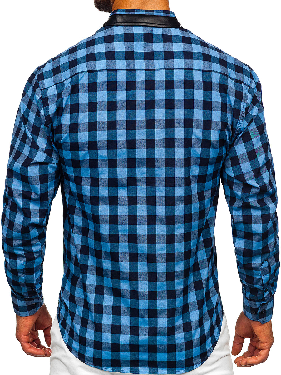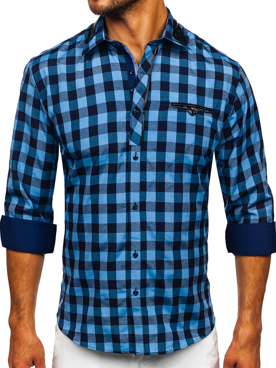 Opiniones de usuarios de Camisa de cuadros para hombre de manga larga azul marino Bolf 19605