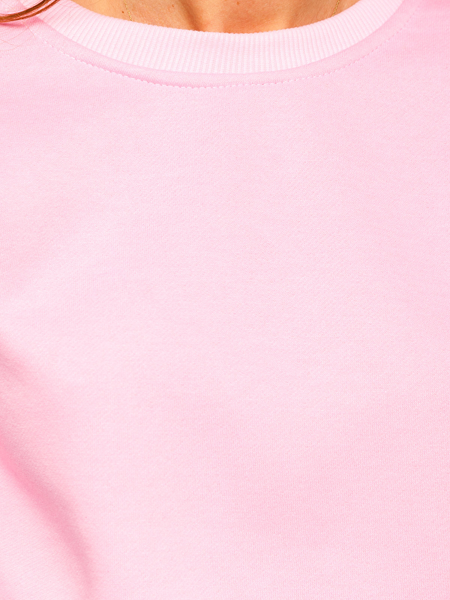 Sudadera para mujer Bolf W01A, confeccionada con un estilo minimalista. Con su corte clásico y recto, la sudadera se ajusta prácticamente a todo tipo de siluetas de mujer. Suave, confeccionada con una tela agradable al tacto, se inserta por encima de la cabeza. Bajo y puños estan acabados en punto elástico ancho. No tiene capucha y cuenta con un pequeño escote redondo acabado con un ribete del mismo color. Este producto básico se puede combinar fácilmente con varias prendas.