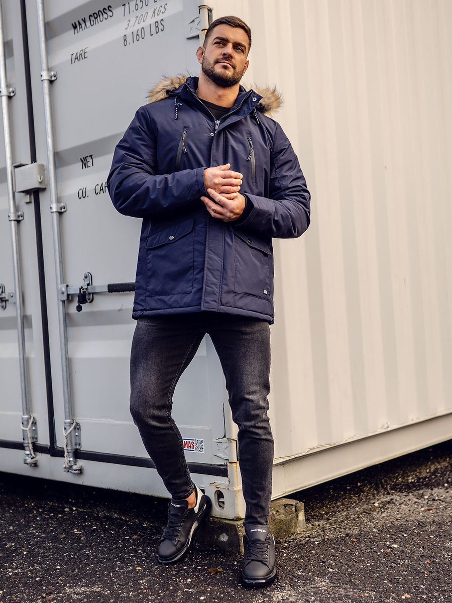 Chaqueta parka de invierno tipo alaska para hombre Bolf WX032DA de color azul tinta es perfecta para la temporada de invierno. Cuenta con un cierre clásico de cremallera y botones automáticos. Cuenta con un cuello alto y una capucha extraíble y ajustable para protegerse del viento y la lluvia. El elemento decorativo único es el pelo extraíble en la capucha y el logotipo en la manga. Su corte ajustado y sencillo garantiza que todo el mundo se sentirá excepcional al llevarla. Esta chaquera tiene bolsillos con un cierre de cremallera en el pechoy exteriores con solapa y un cierre de botón automático. Además, hay otro bolsillo interno. Confeccionada con telas de la más alta calidad, por lo que es muy agradable al tacto e increíblemente cómodo. Se compone de 100% de poliéster. Por su versatilidad, el producto se puede combinar con muchos estilos. Se combina genial con unos vaqueros y una camiseta de manga larga.