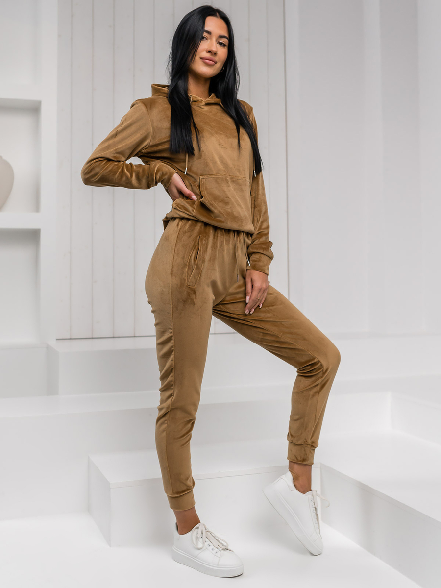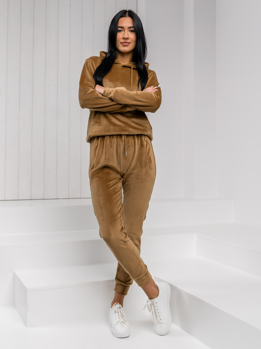 Opiniones de usuarios de Chándal velour de dos piezas con capucha para mujer marrón Bolf 8C1175
