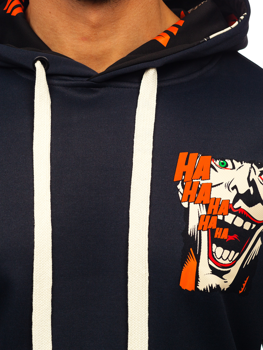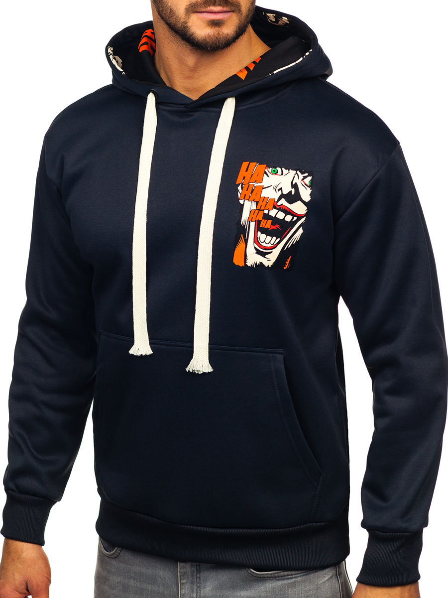 Opiniones de usuarios de Sudadera tipo canguro con capucha e impresión para hombre azul oscuro Bolf M286