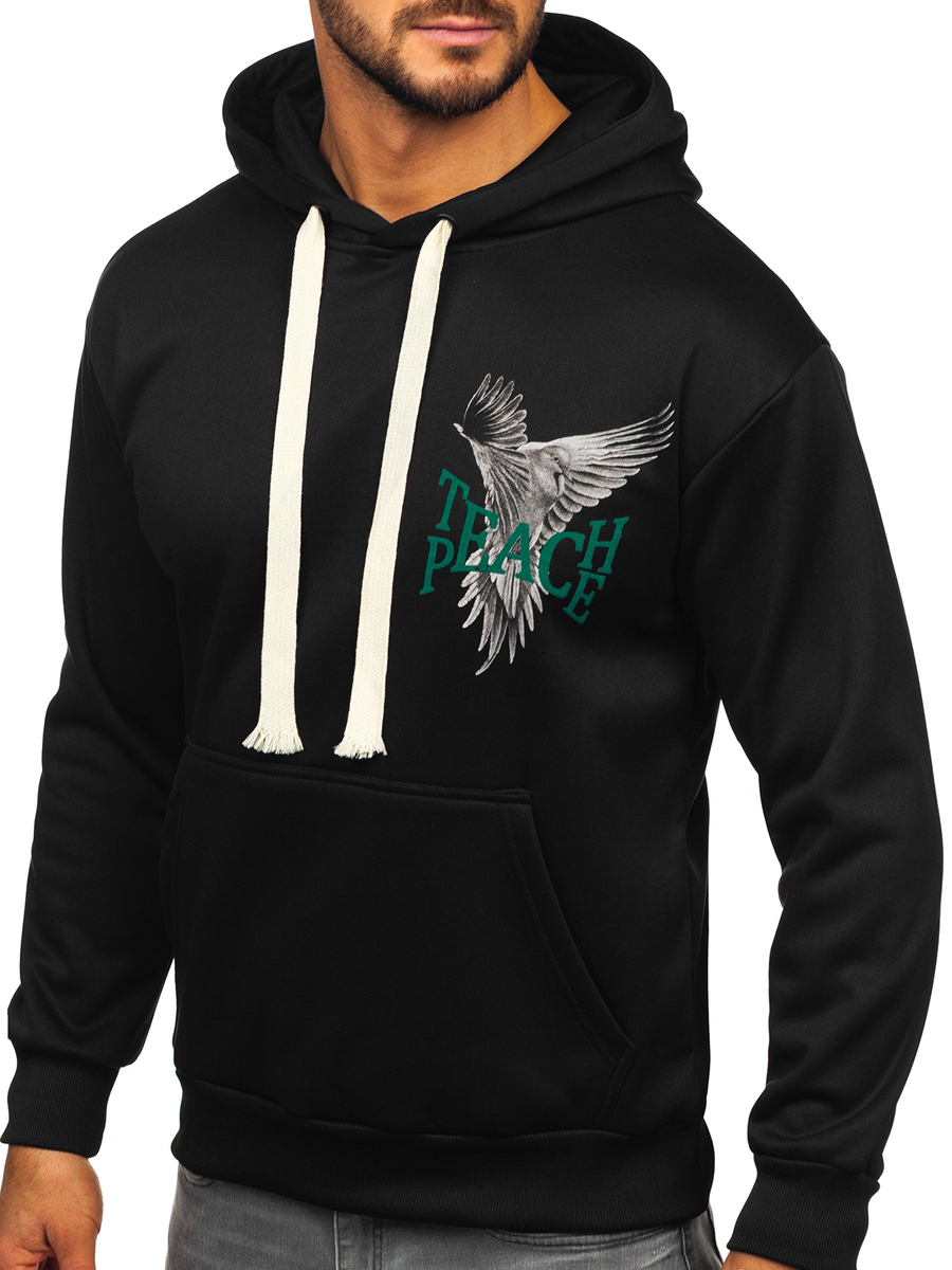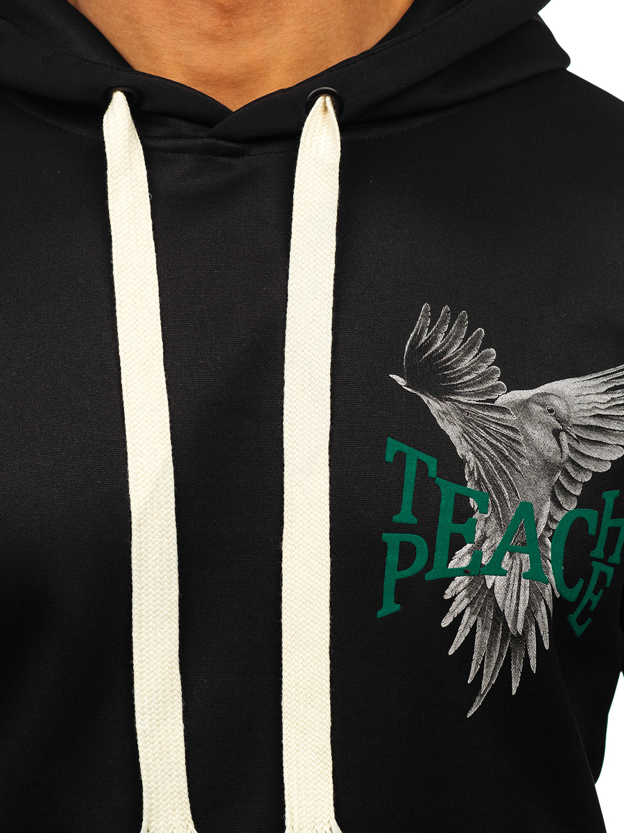 Opiniones de usuarios de Sudadera tipo canguro con capucha e impresión para hombre negro Bolf M279
