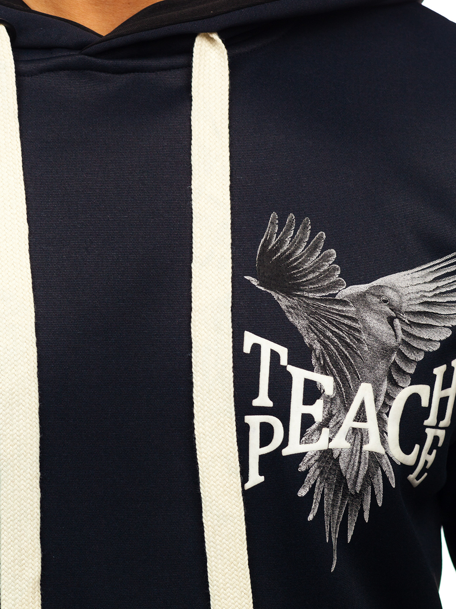 Opiniones de usuarios de Sudadera tipo canguro con capucha e impresión para hombre azul oscuro Bolf M279