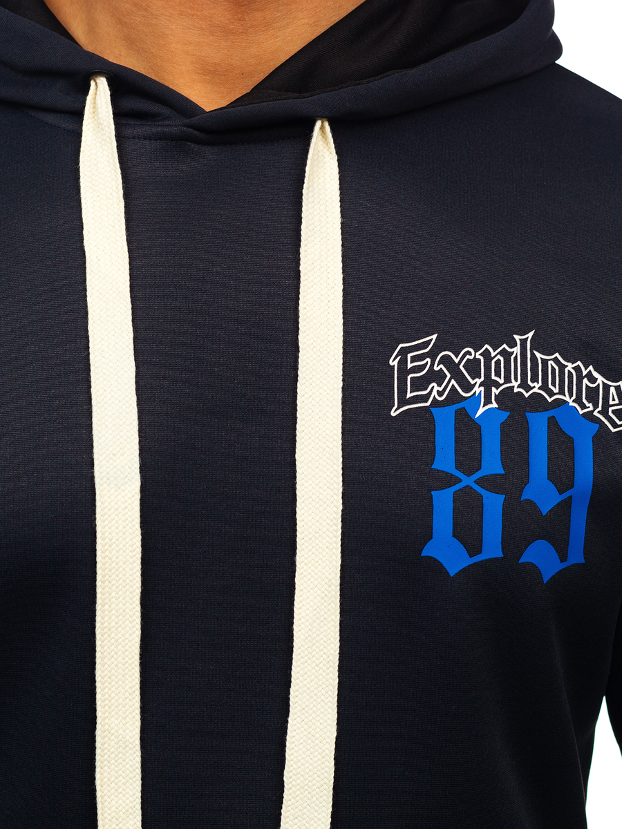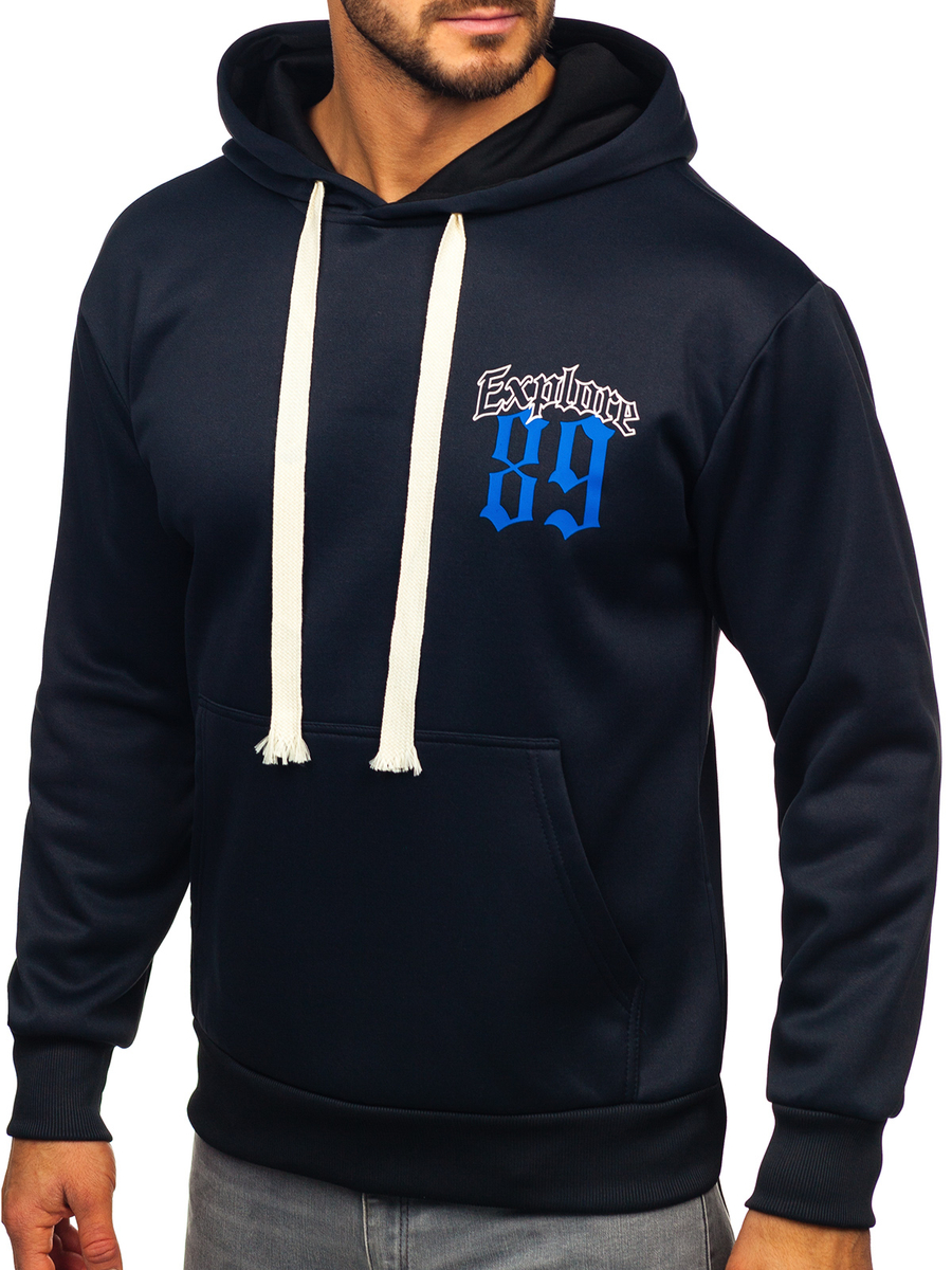 Opiniones de usuarios de Sudadera tipo canguro con capucha e impresión para hombre azul oscuro Bolf M278