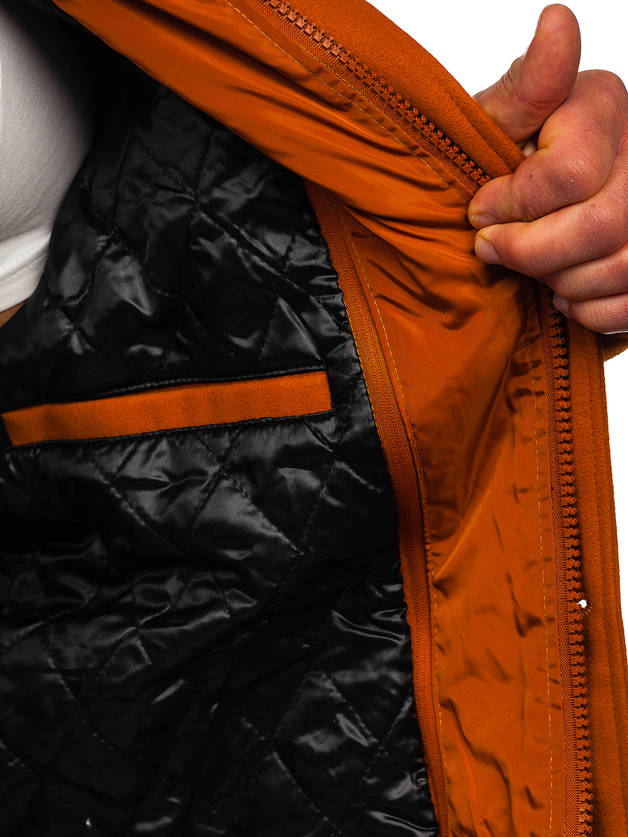 Abrigo camel para hombre Bolf 8856A1 es un elegante abrigo de botonadura sencilla que se presenta además en dos opciones de color: negro y gris. Es práctico y puede considerarse atemporal. Uno de los productos que no pueden faltar en tu armario de otoño/invierno. Con un abrigo negro de invierno, un look de diario será perfecto, pero también puede combinarse con estilos más elegantes. Es la mejor solución para los días de otoño e invierno, ya que protege perfectamente del frío y el viento. Tiene un cierre de cremallera y botones, y dos cuellos: uno reversible y otro alto que puede abrocharse hasta el cuello. Además, este abrigo cuenta con un bolsillo adicional en el pecho con cierre de cremallera. Incluye otros cuatro prácticos bolsillos exteriores y uno interior.