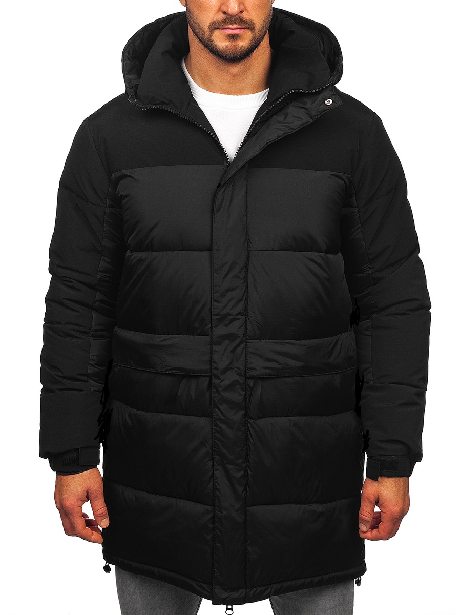 Opiniones de usuarios de Chaqueta acolchada larga de invierno con capucha para hombre negro Bolf 31M5016