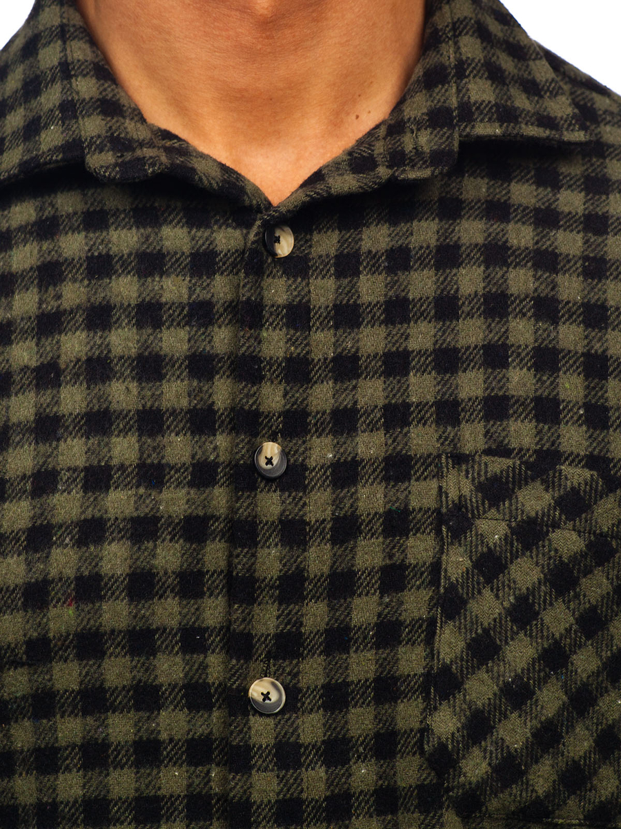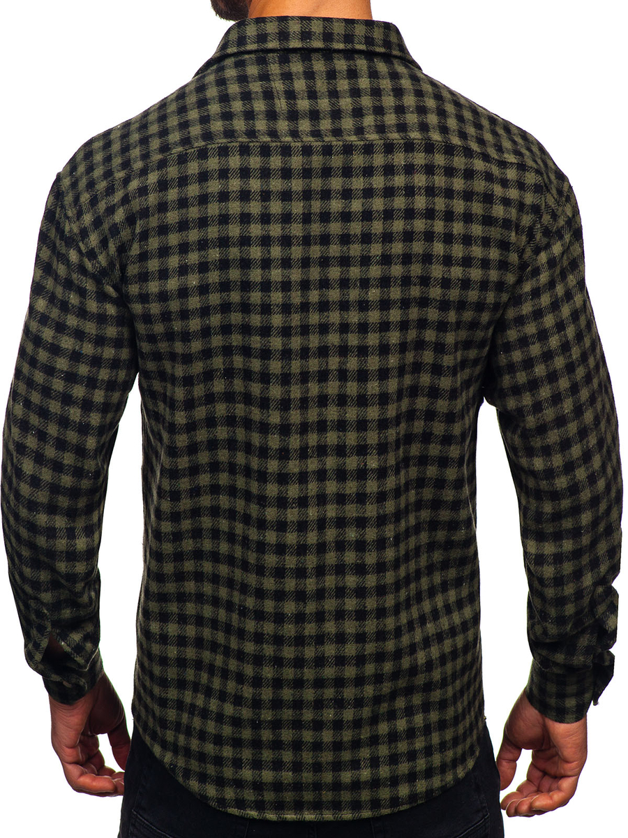 Opiniones de usuarios de Camisa de franela a cuadros de manga larga para hombre verde Bolf 2025-2