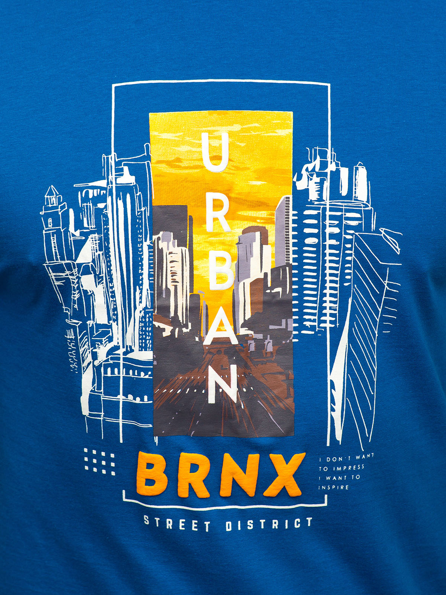 Opiniones de usuarios de Camiseta estampada de algodón para hombre Azul Bolf MPO3452