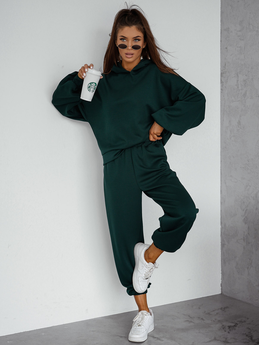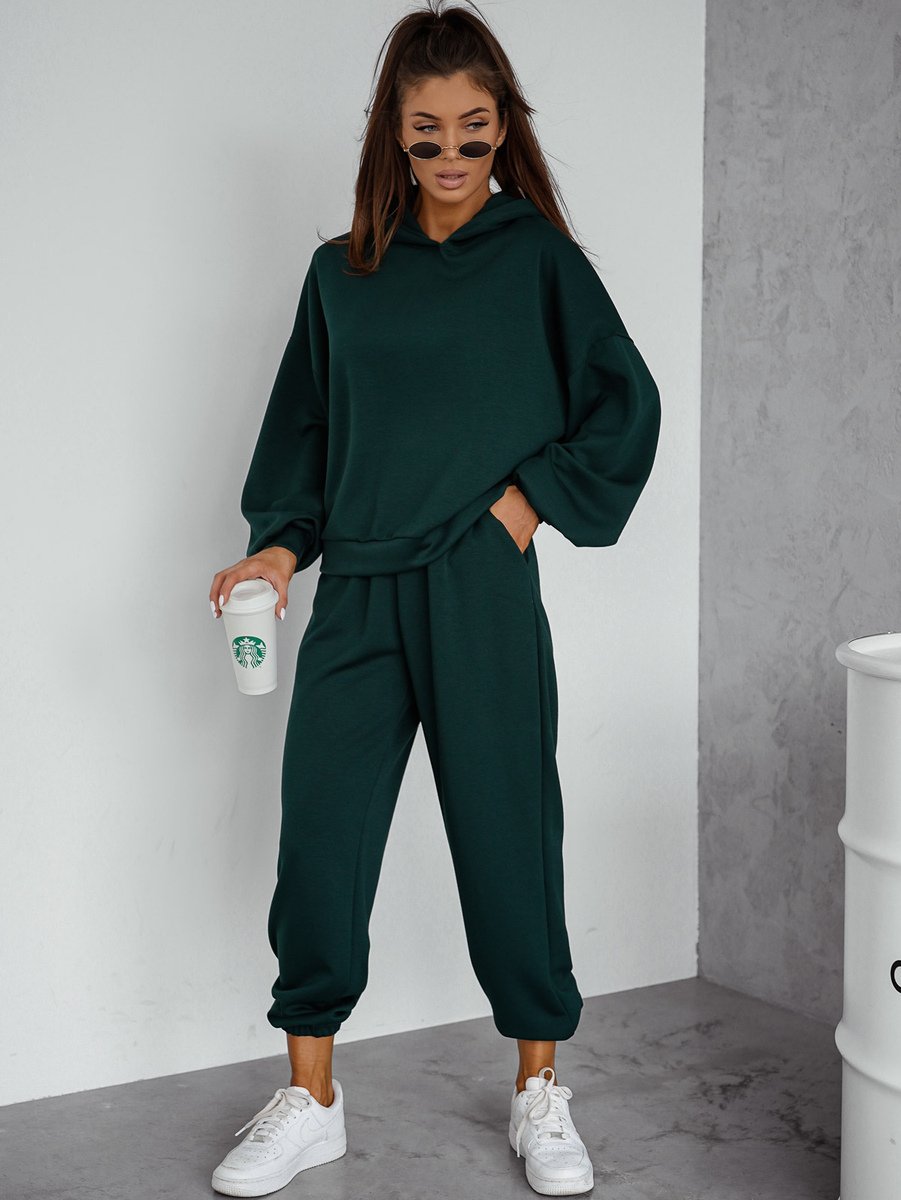 Opiniones de usuarios de Conjunto de sudadera con capucha de dos piezas para mujer color rosa botella Bolf 525