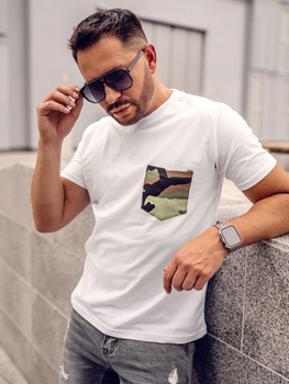 Camiseta algodón de manga corta con impresión y bolsillo camuflaje para hombre blanco Bolf 14507A