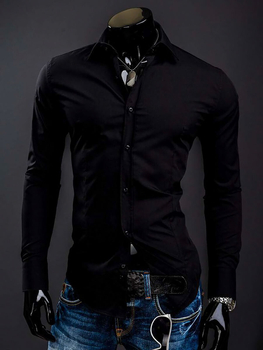 Camisa elegante de manga larga para hombre negro Bolf 22732