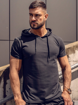 Camisetas negras de manga corta con capucha para hombre