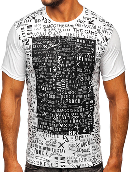 Camiseta de hombre de algodón blanca con estampado Bolf 1173