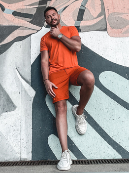 Camisetas naranjas de manga corta lisas para hombre