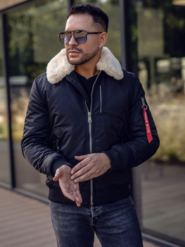 Chaqueta de entretiempo aviador para hombre negro Bolf EX1787