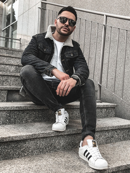 Chaqueta vaquera forrada con borrego tipo trucker para hombre negro Bolf 1109A2