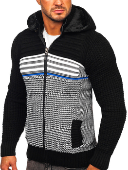 Suéter-chaqueta abierto grueso con capucha para hombre color negro Bolf 2048
